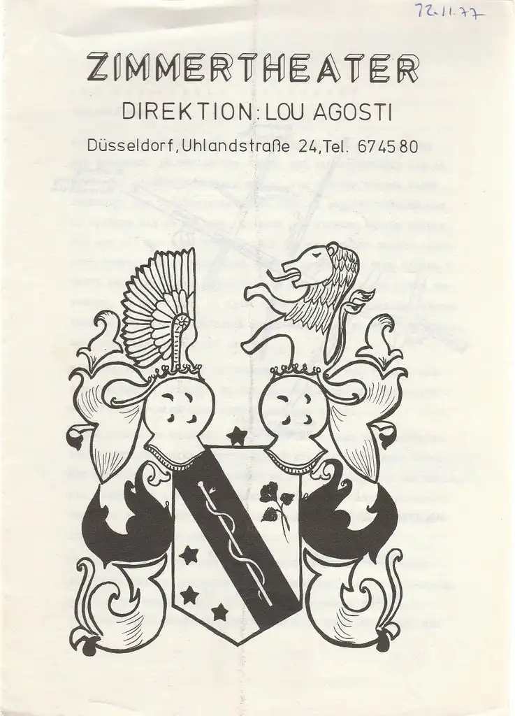 Zimmertheater, Lou Agosti: Programmheft FLITTERWOCHEN Komödie von Paul Helwig Premiere 3. September 1977.