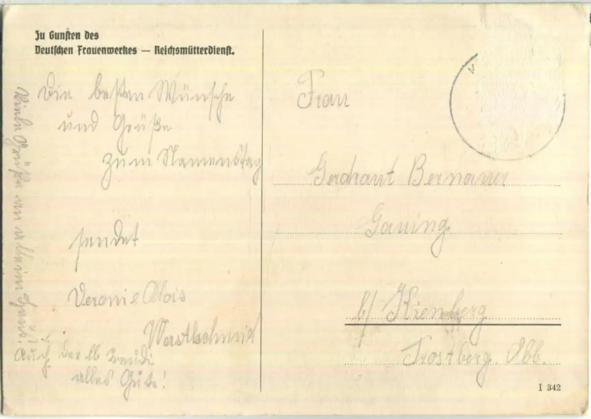 Zu Gunsten des Deutschen Frauenwerks - Reichsmütterdienst - Photo Frensdorf-Hoeland - Gebrauchsspuren - Marke entfernt (E90665) gel.