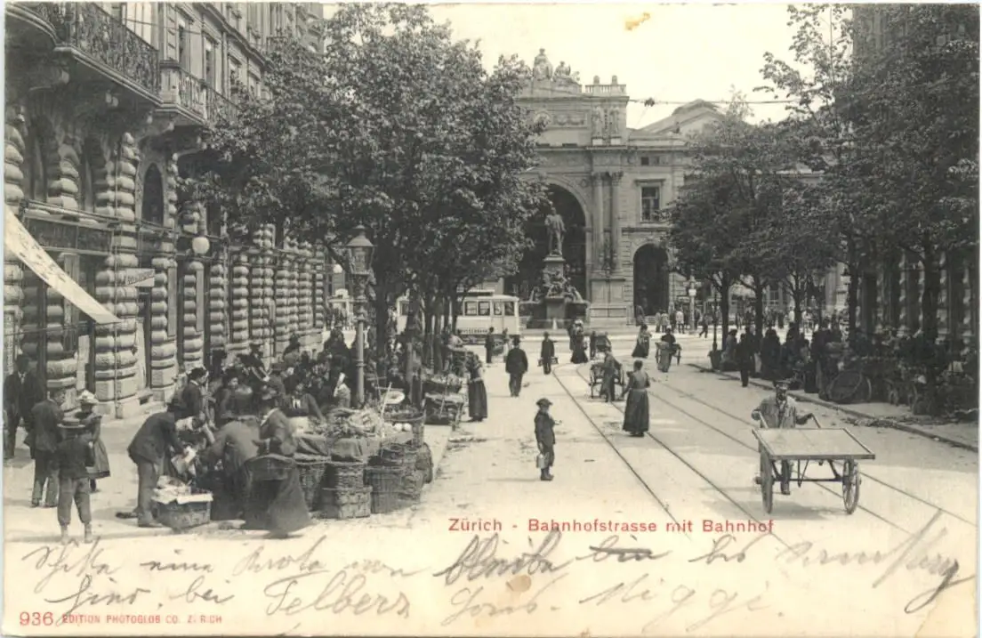 Zürich - Bahnhofstrasse mit Bahnhof -701810