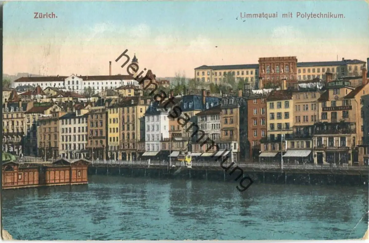 Zürich - Limmatquai mit Polytechnikum - Verlag Rathe-Fehlmann Basel - Ecken bestossen - Marke entfernt - Eckknick unten rechts (G15514) gel. 1912