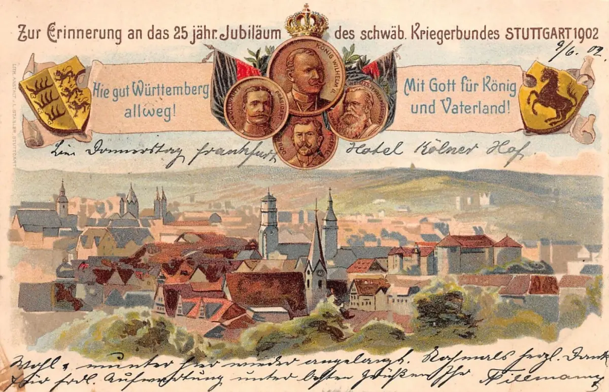 Zur Erinnerung 25 jähr. Jubiläum schwäb. Kriegerbund Stuttgart Postkarte AK 1902