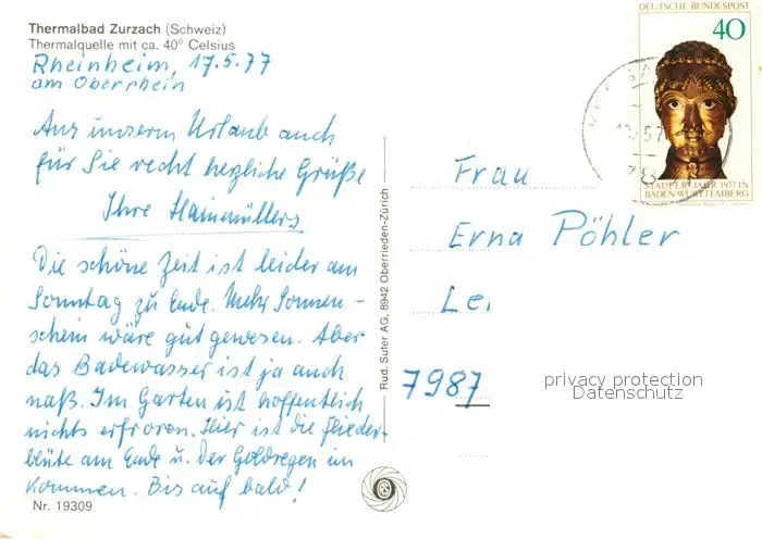 Zurzach Thermalbad Thermalquelle Turmhotel Zurzach postalisch gelaufen 1977 Erhaltung siehe scans [FriedD77] Frierer