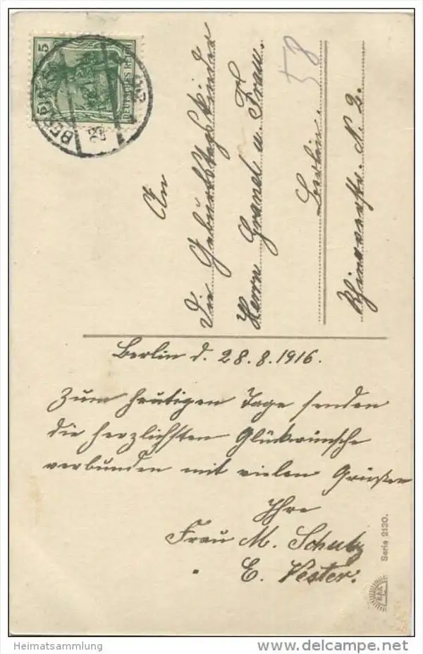 Zwei Kinder mit Blumen - Bug rechts (E15509) gel. 1916