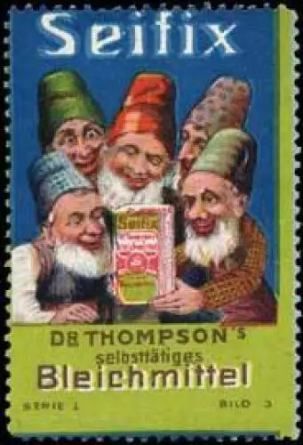 Dr. Thompsons selbsttätiges Bleichmittel. Serie 1, Bild 3, Zwerg, Waschmittel, Größe/Zustand: 5x3 , guter Zustand, Original alte Reklamemarke die seinerzeit für die Werbung benutzt wurde