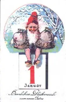 Zwerge mit Säcken auf Kalender o 31.12.1914