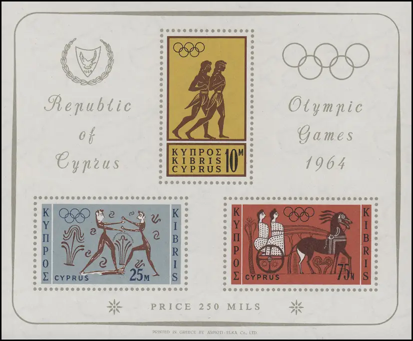 Zypern: Olympia Tokio 1964 - Boxer, Läufer, Streitwagen, Block 2 **