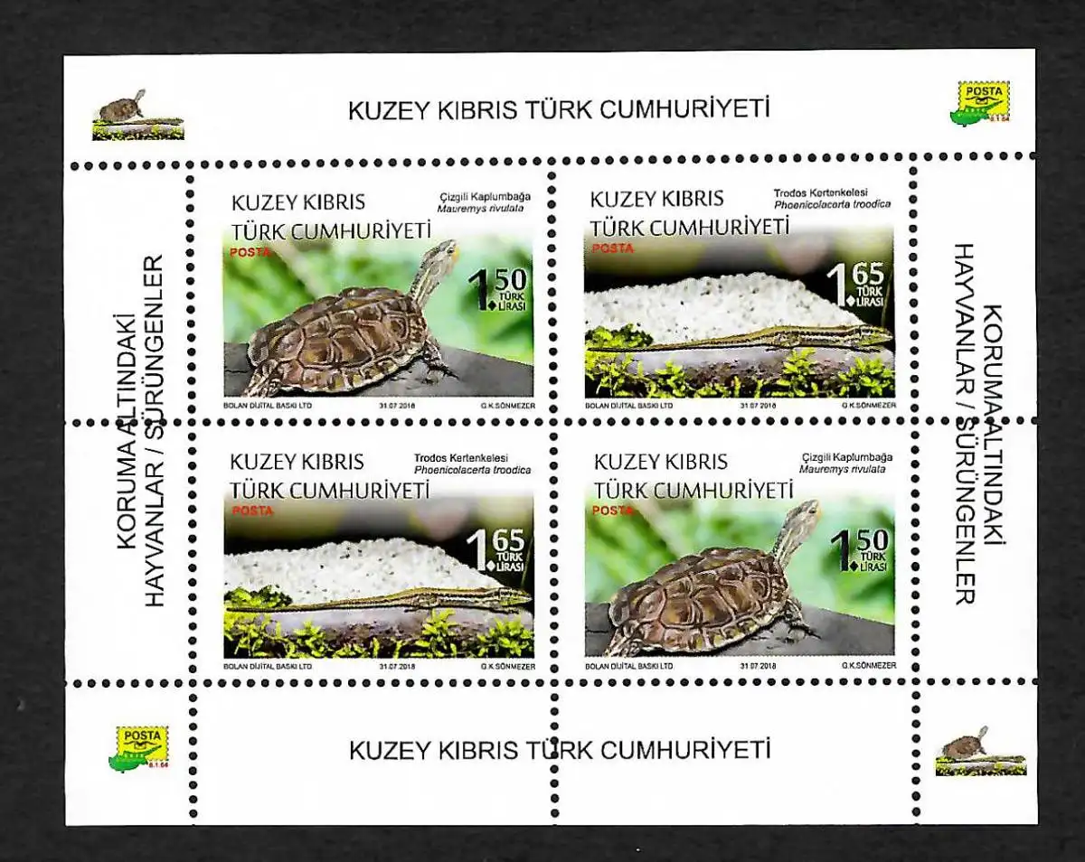 Zypern türkisch 2018: Reptilien Schildkröte und Echse, postfrisch