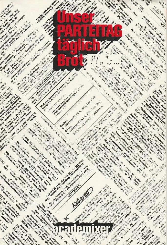 academixer, Kabarett an der Karl-Marx-Universität Leipzig, Jürgen Hart: Programmheft Unser parteitagtäglich Brot.