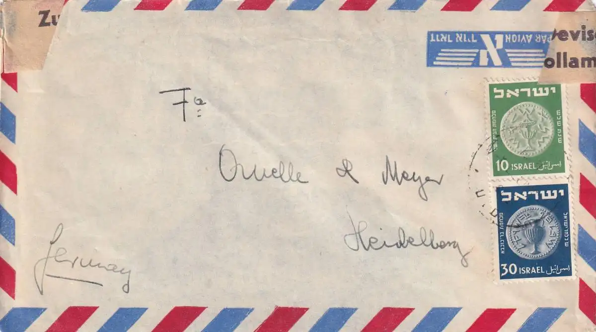 air mail Israel to Heidelberg/Germany Devisenüberwachung zollamtlich geöffnet