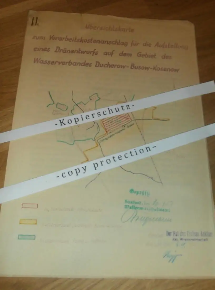 alte Dokumente - Ducherow , Busow , Kosenow , Dargibell in Mecklenburg , 1951 , mit Karte , Kosenow , Anklam !!!