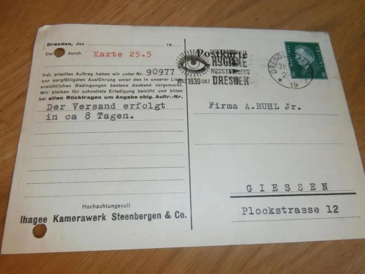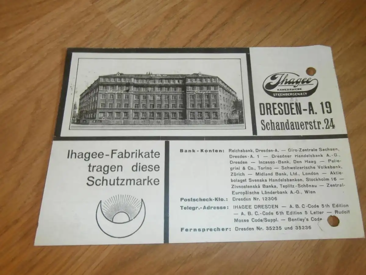 alte Karte - Ihagee - Kamerawerk in Dresden , 1928 , Postkarte , Fabrik , Kamera , altes Dokument !!AZ9-X