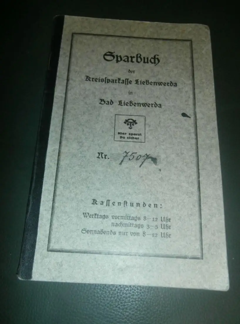 altes Sparbuch Bad Liebenwerda , 1937 - 1945 , Frida Schurig , Sparkasse , Bank !!!