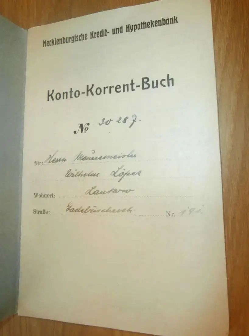 altes Sparbuch Schwerin , 1935 - 1937 , Maurer Wilhelm Löper in Schwerin Lankow i. Mecklenburg , Sparkasse , Bank !!AZ-SP/WR7