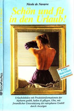 die Seiten sind leicht gebräunt, Urlaubslektüre mit Produktinformationen der bipharm gmbh, heilen und pflegen, Ulm, mit freundlicher Unterstützung der ratiopharm GmbH durch Anzeigen. Krank sein im Urlaub, gar Sonnenbrand haben, Kopfschmerer auf Menschen unsympathisch wirken? - Solche Katastrophen während der wertvollsten Tage des Jahres müssen nicht sein, lassen sich mit „Garantie" verhmdern. Nicole de Navarre, die bekannte Sachbuch- und lllustriertenautorin, gibt Ihnen in der vorliegenden Broschüre `htige Tips und Hinweisse dazu. Natürlich müssen Sie hause, damit anfangen, alle etwaigen Vorbegen für den Fall der Fälle treffen. Doch das ist im Grunle sehr leicht, noch dazu manchmal amüsant und reizend, wenn Sie den Ratschlägen dieser Broschüre folgen. Auf der anderen Seite, erst im Urlaub angekommen, ist es vielfach reits zu spät. Denn in den meisten Fällen kann man dort nicht das erhalten, was man nun einmal dringend zum Erfolg der Ferien benötigt. Deshalb: beherzigen Sie Nicole de Navarres Ratschläge - denn es ist im Grunde genommen wirklieh ganz leicht ... (vom Einbandrücken) Beschreibung vom Antiquariat Ardelt 4j5b ISBN-Nummer: 38916700921 Antiquariat Ardelt