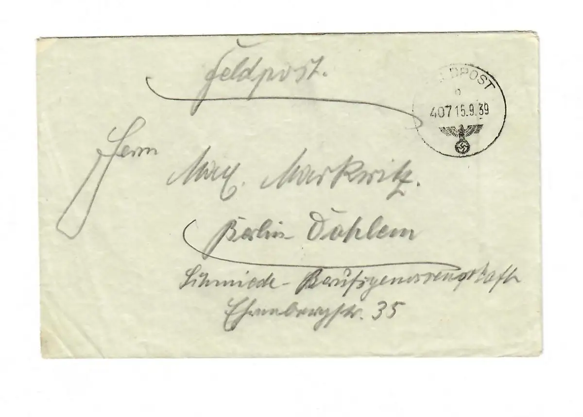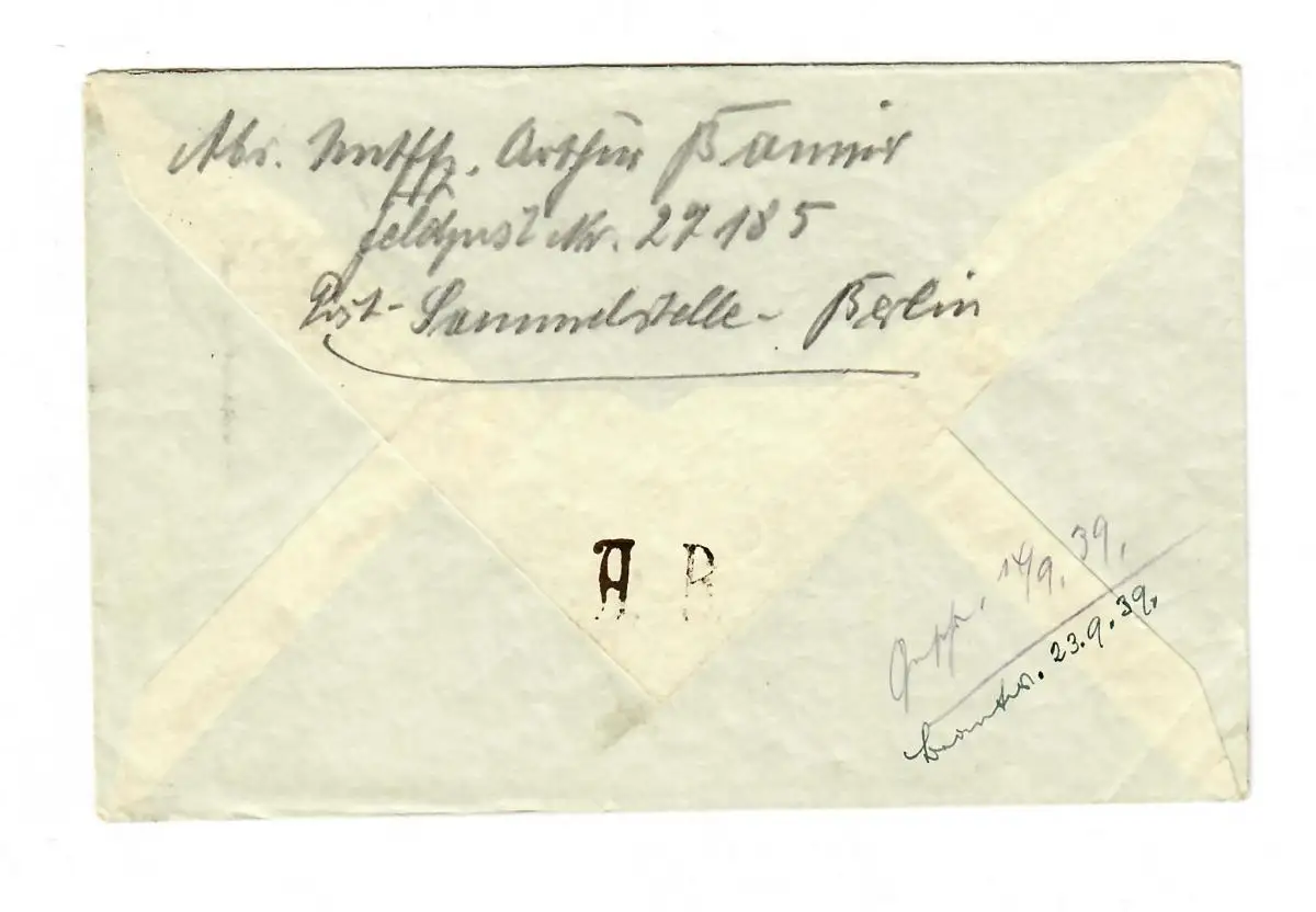 frühe Feldpost, 15.09.39 mit FPNr. 27185, Raum Siemiawa/Radomysl nach Berlin