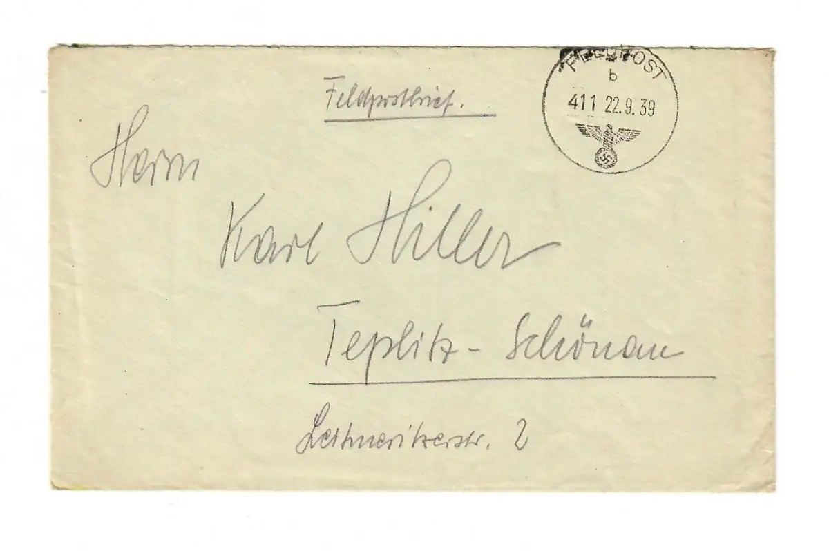 frühe Feldpost, 22.09.39,FPNr. 27818, Raum Modlin/Warschau nach Teplitz-Schönau