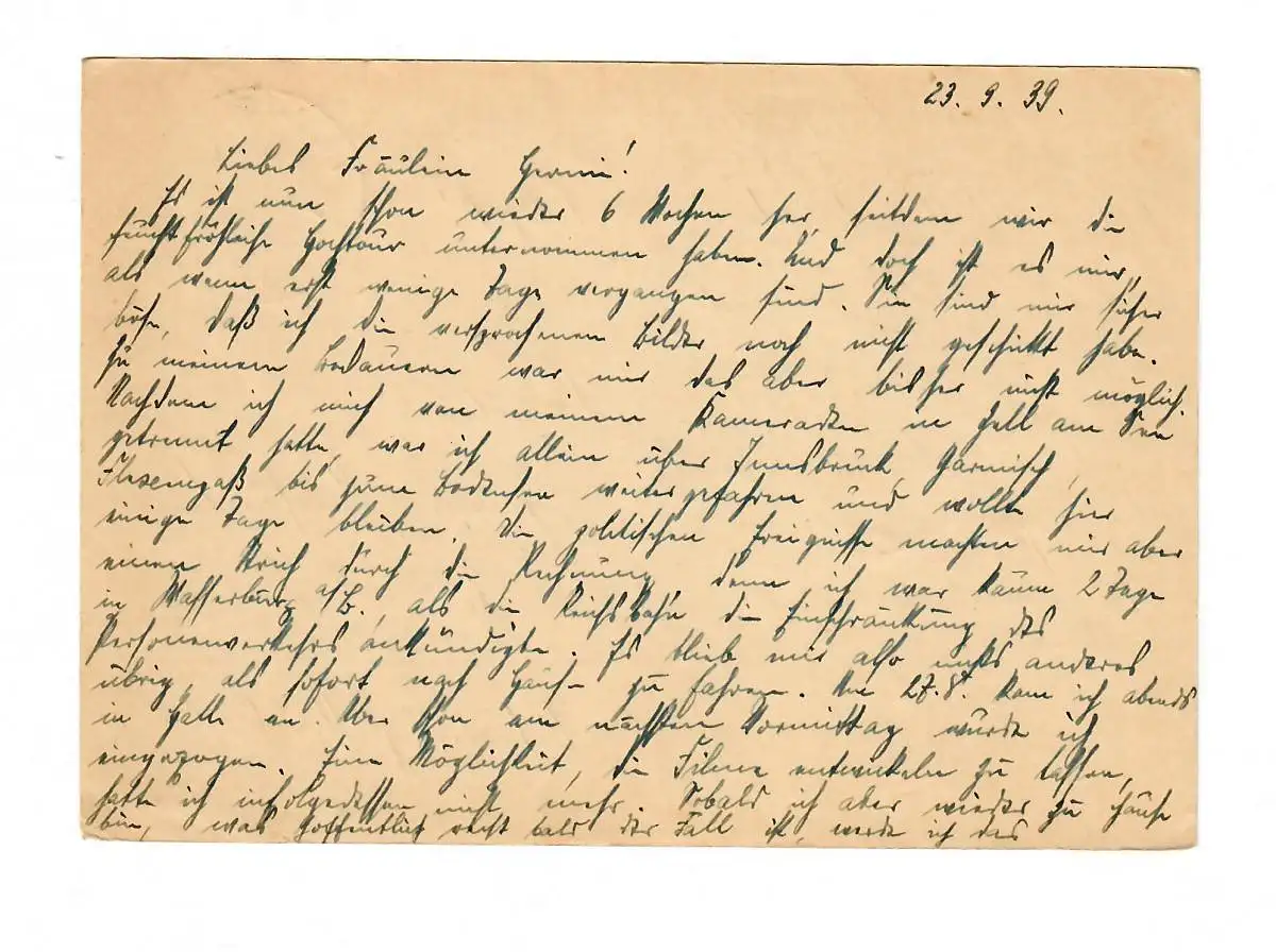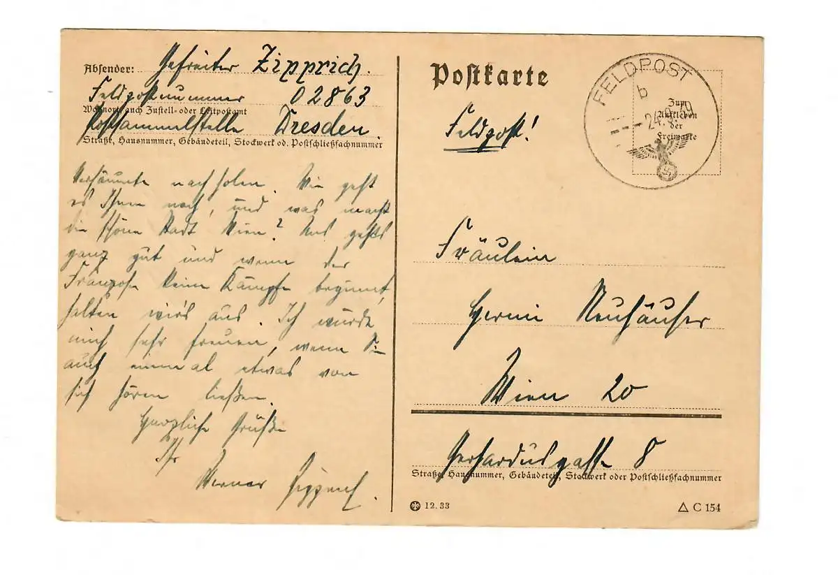 frühe Feldpost, 24.9.39, FPNr. 02863 nach Wien