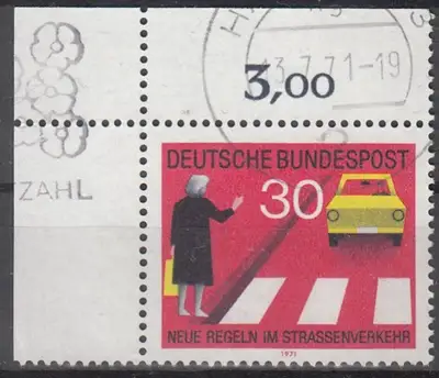 Freie Bezeichnung: hc001.086 - Bund Mi.Nr. 673 o, Eckrand oben links, Stempel Hamburg