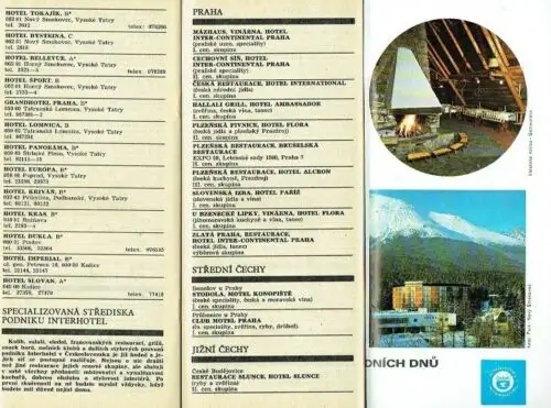 sehr guter Zustand, geringe Gebrauchs- und Alterungsspuren, Prospekt mit einem Verzeichnis der Hotels in Tschechien und der Slowakei, mit kleiner Landeskarte, Hotelliste enthält Adresse, Telefon- und Faxnummer, Softcover, ca. 9,5 x 21, 32 Seiten mit zahlreichen Bildern