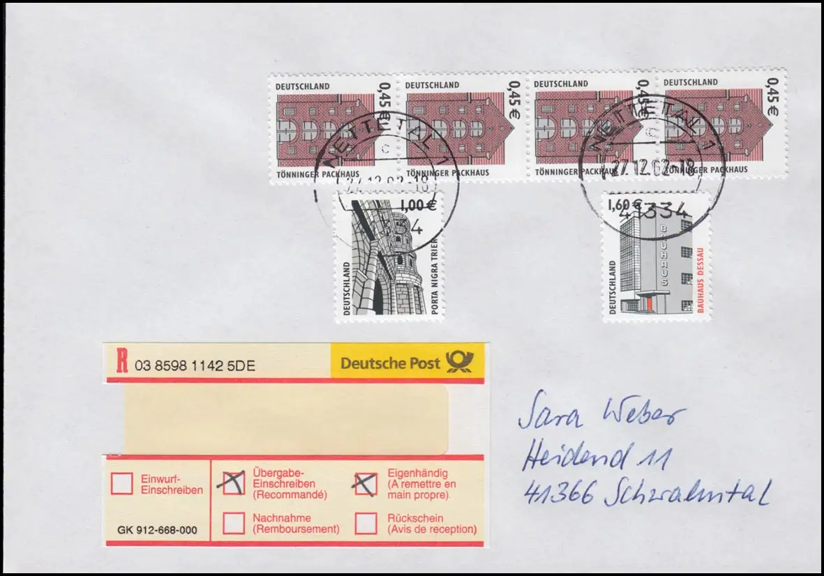 neue SWK: 2299 (4er-Streifen) 2301+2302, Übergabe-R-FDC Eigenhändig portogerecht