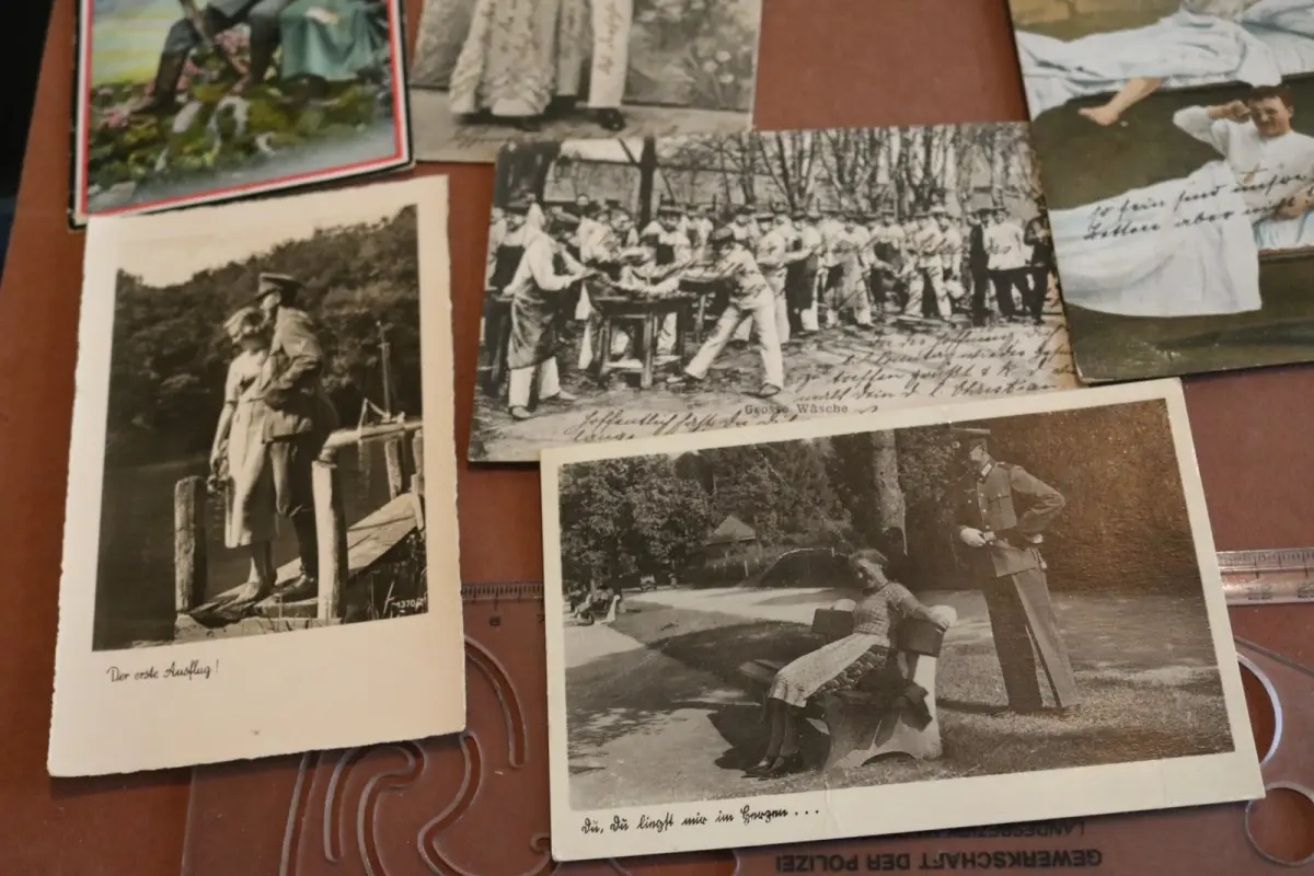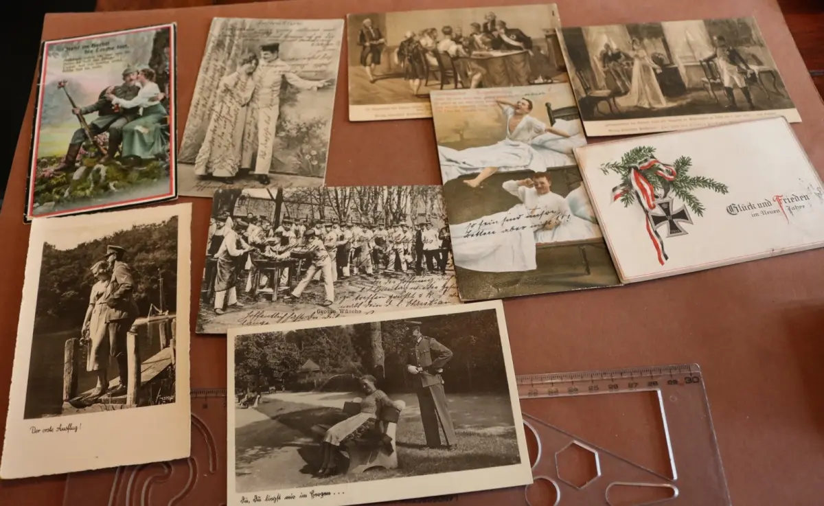 Biete hier neun alte Karten - Militärische Motive, Patriotismus 1 u. 2 WK
