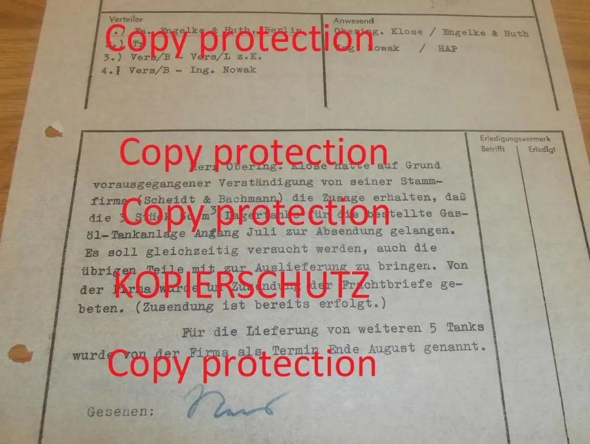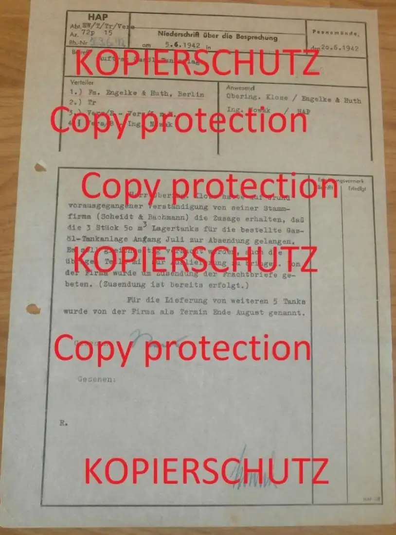 original Dokument - Heeresversuchsanstalt Peenemünde , Besprechung 1942 , Tankanlage , Raketen , V1 , V2 , Mecklenburg , HVA !!!