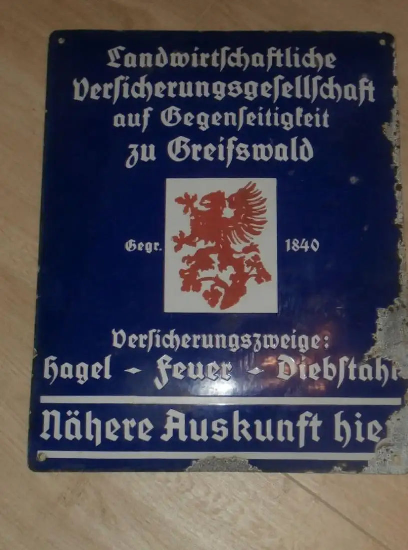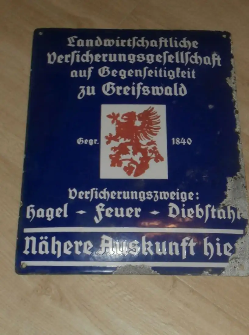 original Emailschild - Landwirtschaftliche Versicherung zu Greifswald i. Mecklenburg !!! Reklame / Werbung
