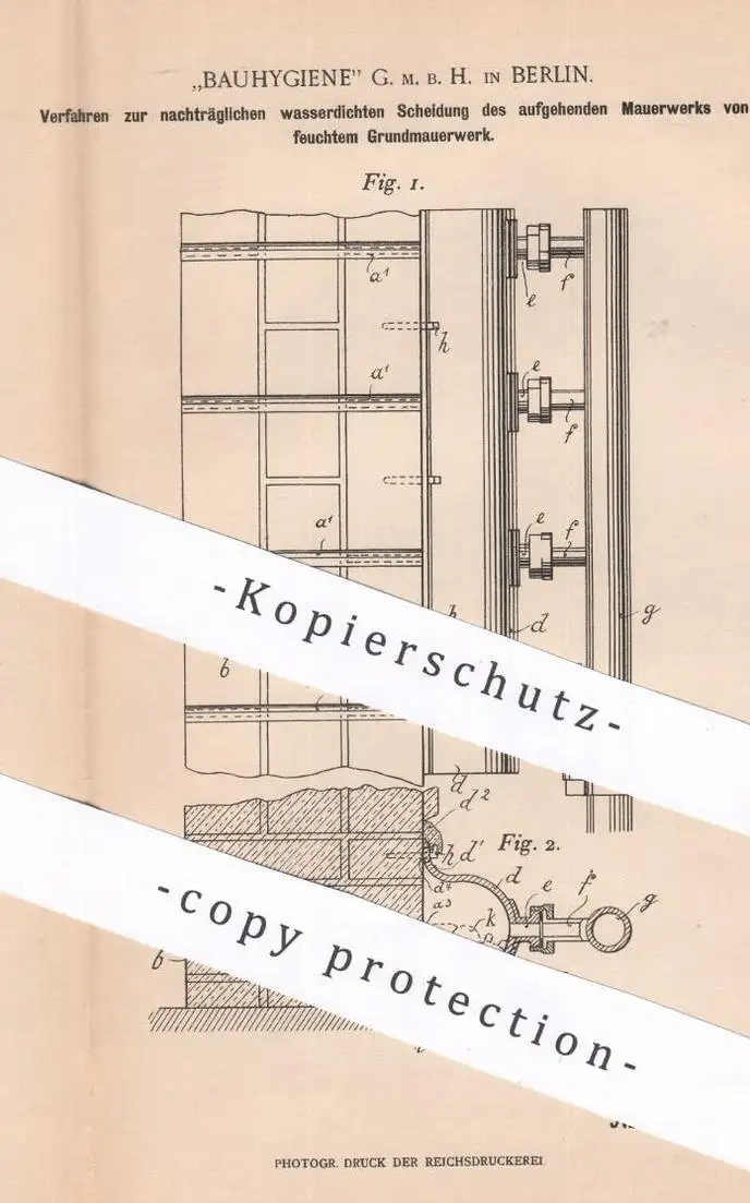 original Patent - Bauhygiene GmbH , Berlin , 1899 , Entfeuchtung von Mauerwerk | Mauern , Grundmauer | Beton , Bau !!