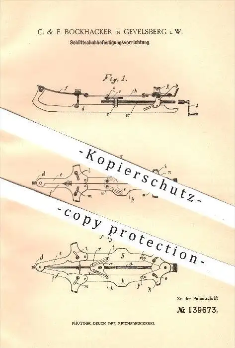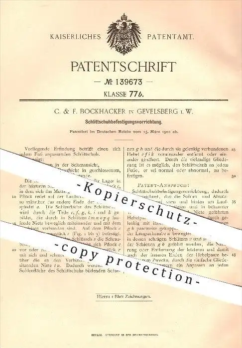 original Patent - C. & F. Bockhacker in Gevelsberg , 1902 , Befestigung der Schlittschuhe , Schlittschuh , Schuhe !!