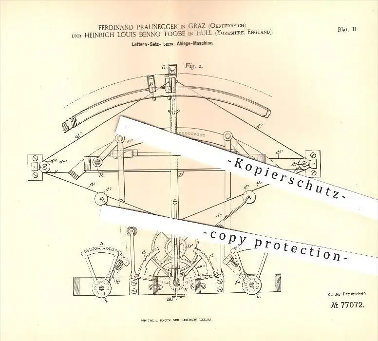 original Patent - F. Praunegger in Graz , Heinrich L. B. Toobe in Hull , Yorkshire , England , 1893 , Letter , Druck !