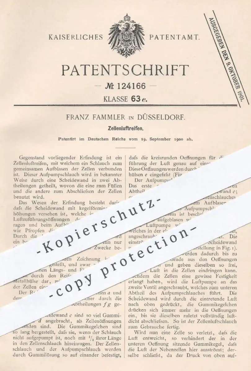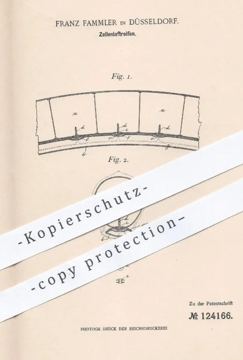 original Patent - Franz Fammler , Düsseldorf , 1900 , Zellenluftreifen | Luftreifen , Luft - Reifen , Rad , Räder !!!