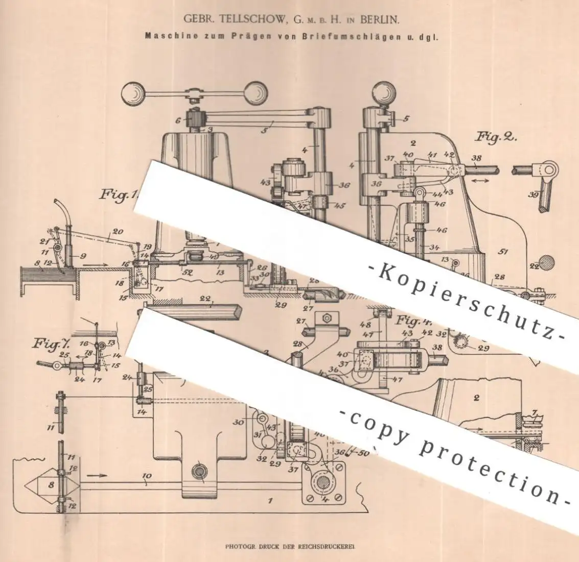 original Patent - Gebrüder Tellschow GmbH , Berlin | 1902 | Prägen von Briefumschlag | Papier , Kuvert , Brief , Post