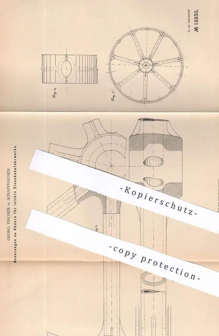 original Patent - Georg Fischer , Schaffhausen , 1881 , Räder für leichte Eisenbahnfuhrwerke | Eisenbahn , Rad , Bahn !!