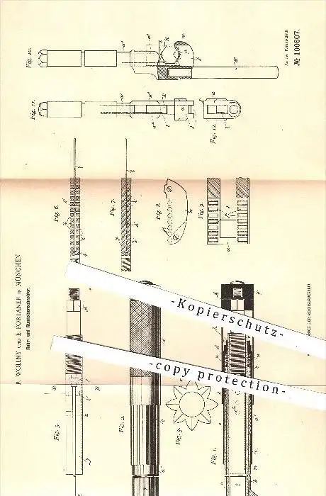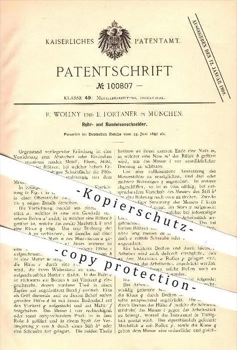 original Patent - R. Wollny , E. Fortaner , München , 1897 , Schneider für Rohre u. Rundeisen , Werkzeuge , Eisen , Rohr