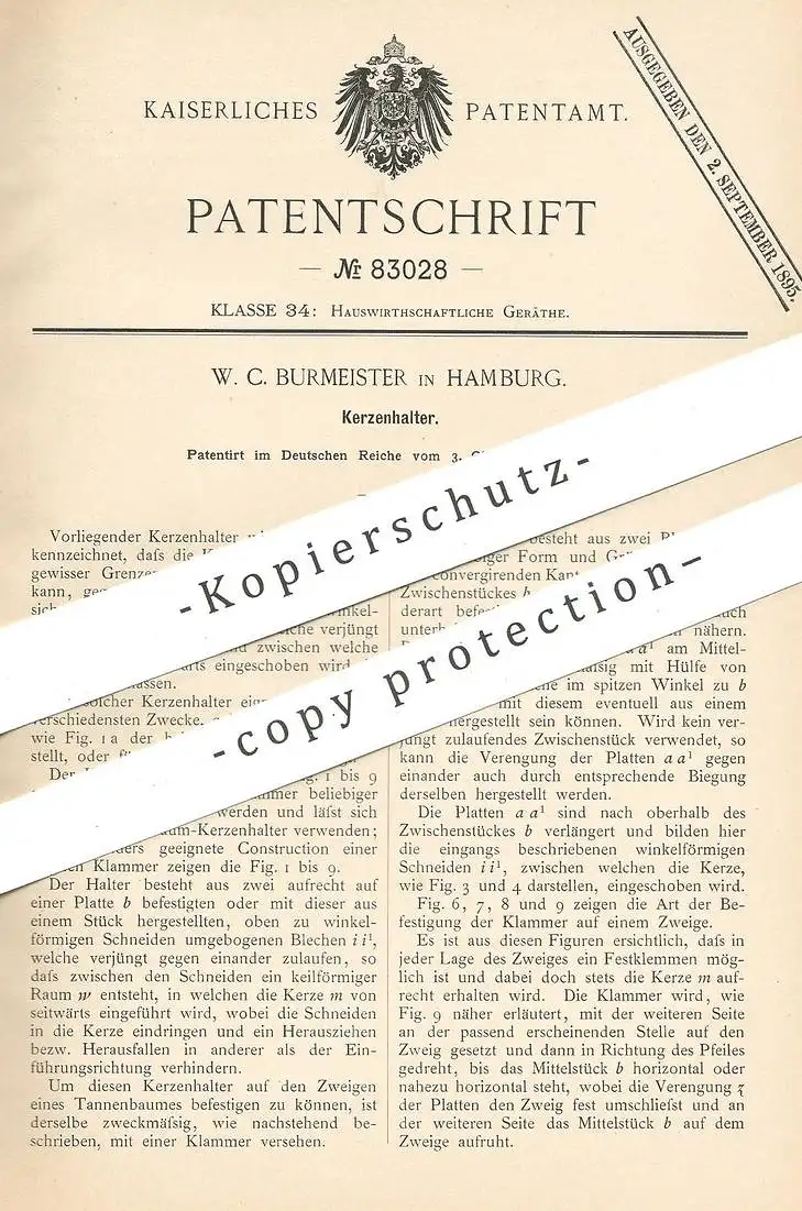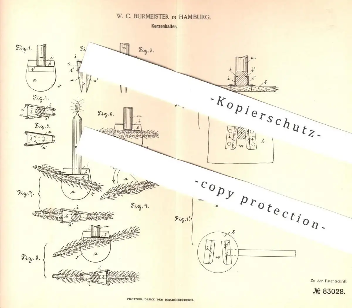 original Patent - W. C. Burmeister , Hamburg | Kerzenhalter | Kerzen - Halter | Kerze , Kerzenständer | Weihnachtsbaum
