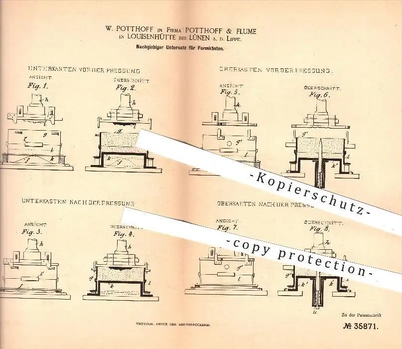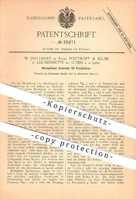 original Patent - W. Potthoff & Flume , Louisenhütte , Lünen , Lippe , Untersatz für Formkästen , Formen , Formerei !!!