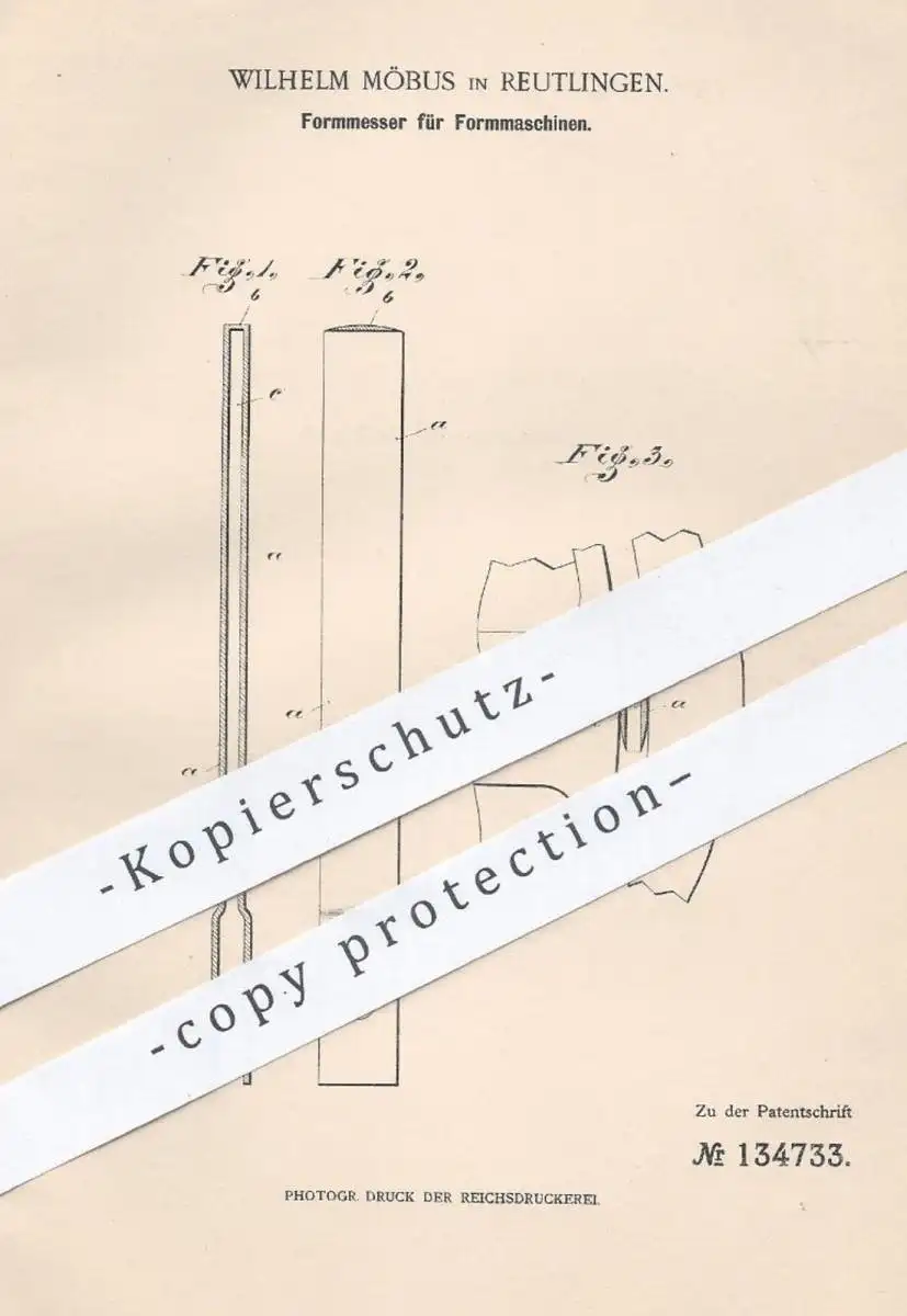 original Patent - Wilhelm Möbus , Reutlingen , 1899 , Formmesser für Formmaschinen | Form , Formen , Messer !!