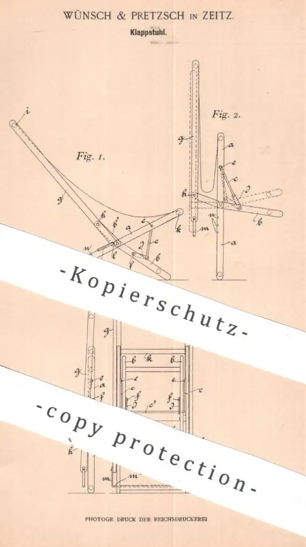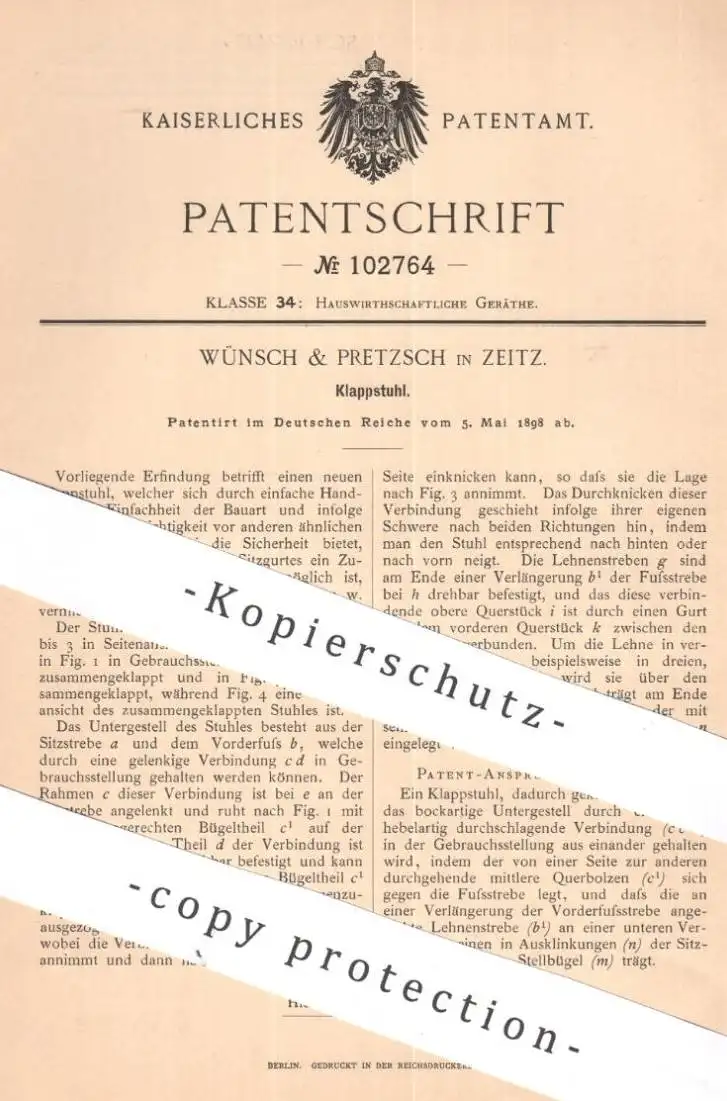 original Patent - Wünsch & Pretzsch , Zeitz | 1898 | Klappstuhl | Stuhl , Stühle , Möbel , Holzstuhl , Möbelbauer