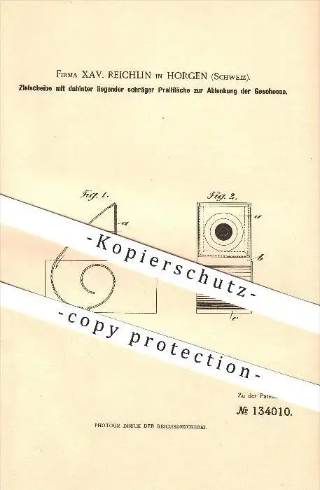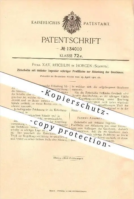 original Patent - Xav. Reichlin in Horgen , Schweiz , 1901 , Zielscheibe mit Prallfläche zur Ablenkung der Geschosse !!!