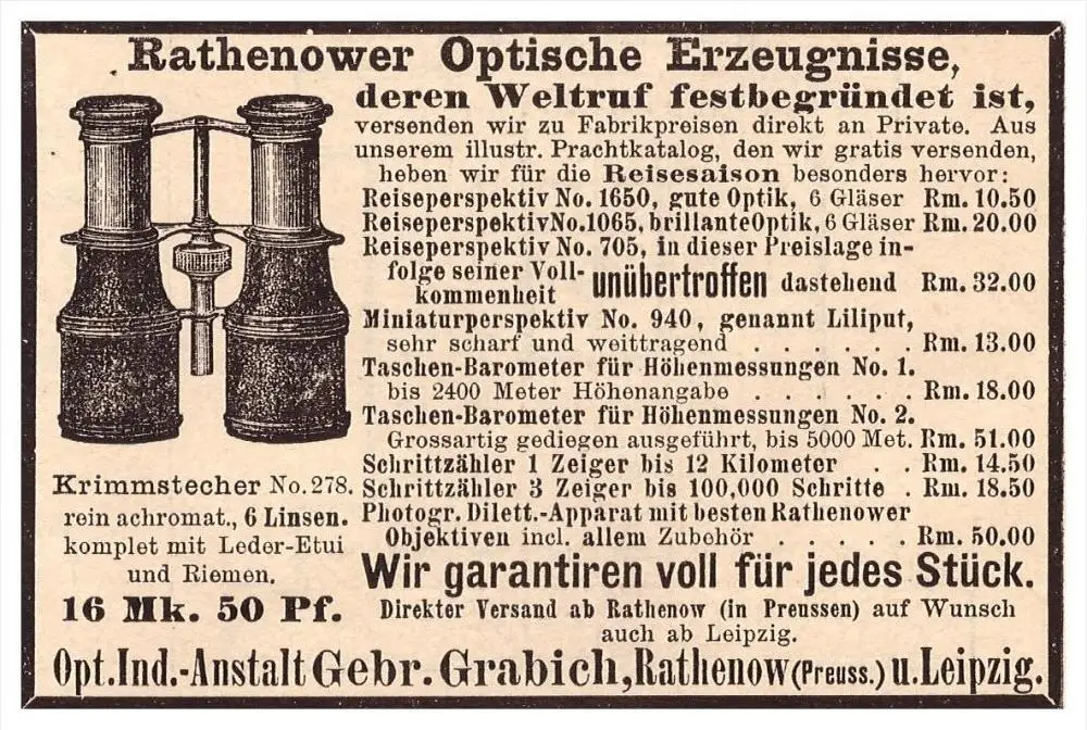 original Werbung - 1888 - Gebr. Grabich in Rathenow und Leipzig , Fernglas , Optik , Fernstecher !!