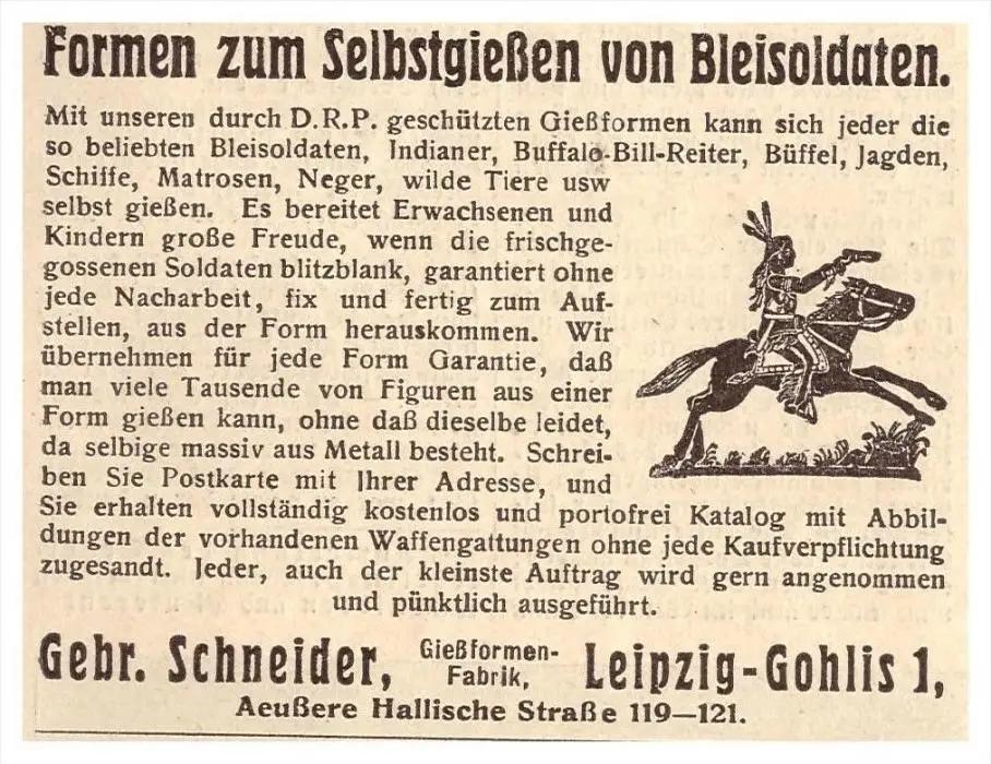 original Werbung - 1925 - Gießen von Bleisoldaten , Gebr. Schneider , Gießformfabrik in Leipzig , Blei , Spielzeug !!!