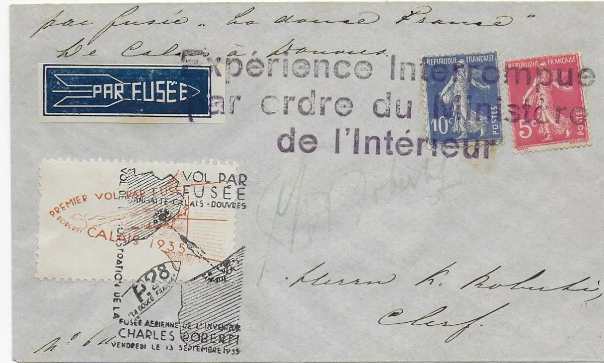 par Fuseée Sangatte-Calais-Douvres, 1935, Rocket Flight