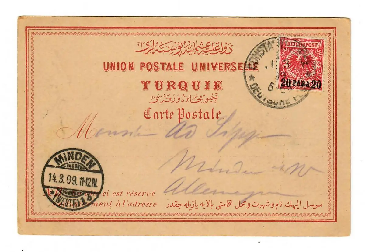 post card Constantinople 1899 to Minden/Germany, Deutsche Post Türkei