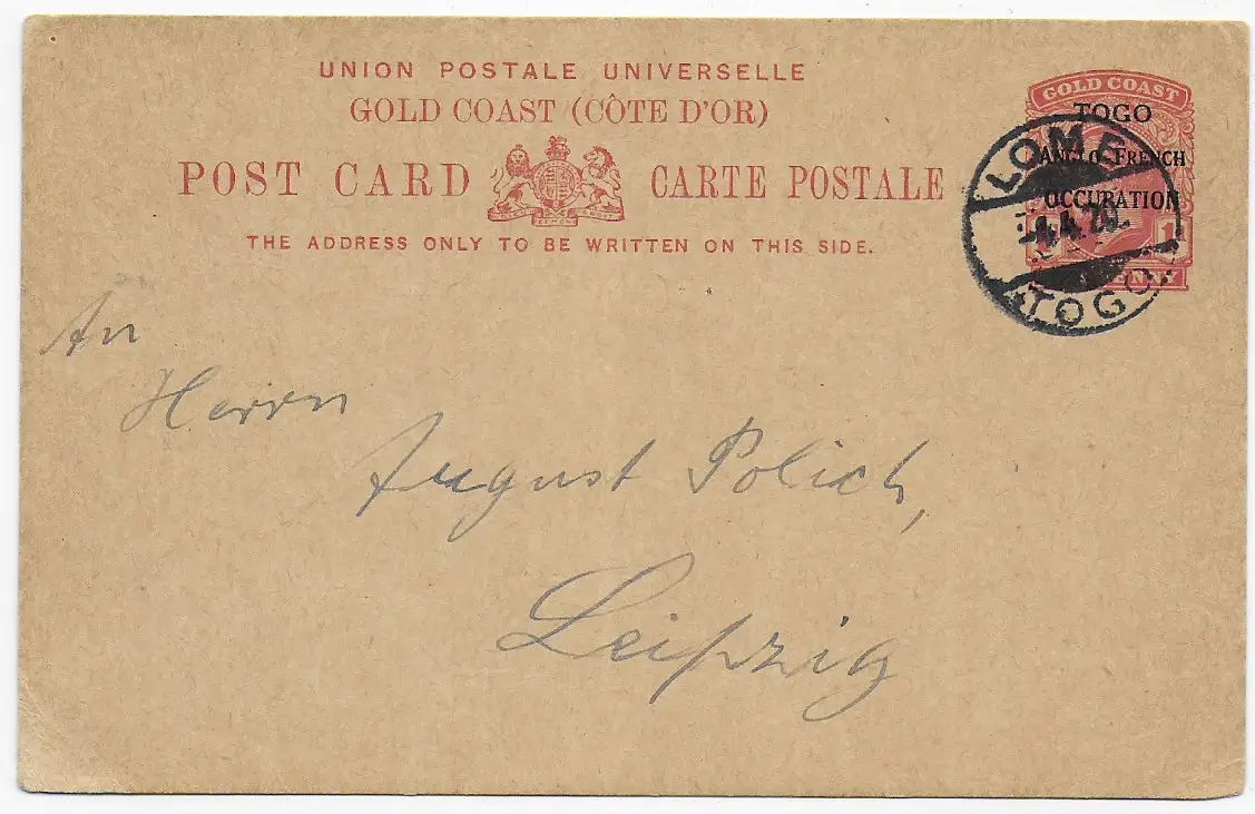 post card Lome/Togo 1920 nach Leipzig: Anglo-French Occupation
