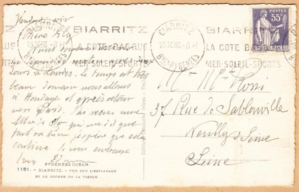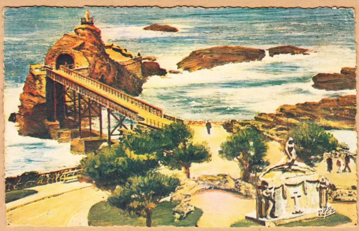CPA Biarrirt, Vue sur L'Esplanade et le Rocher de la Vierge, gel. 1938