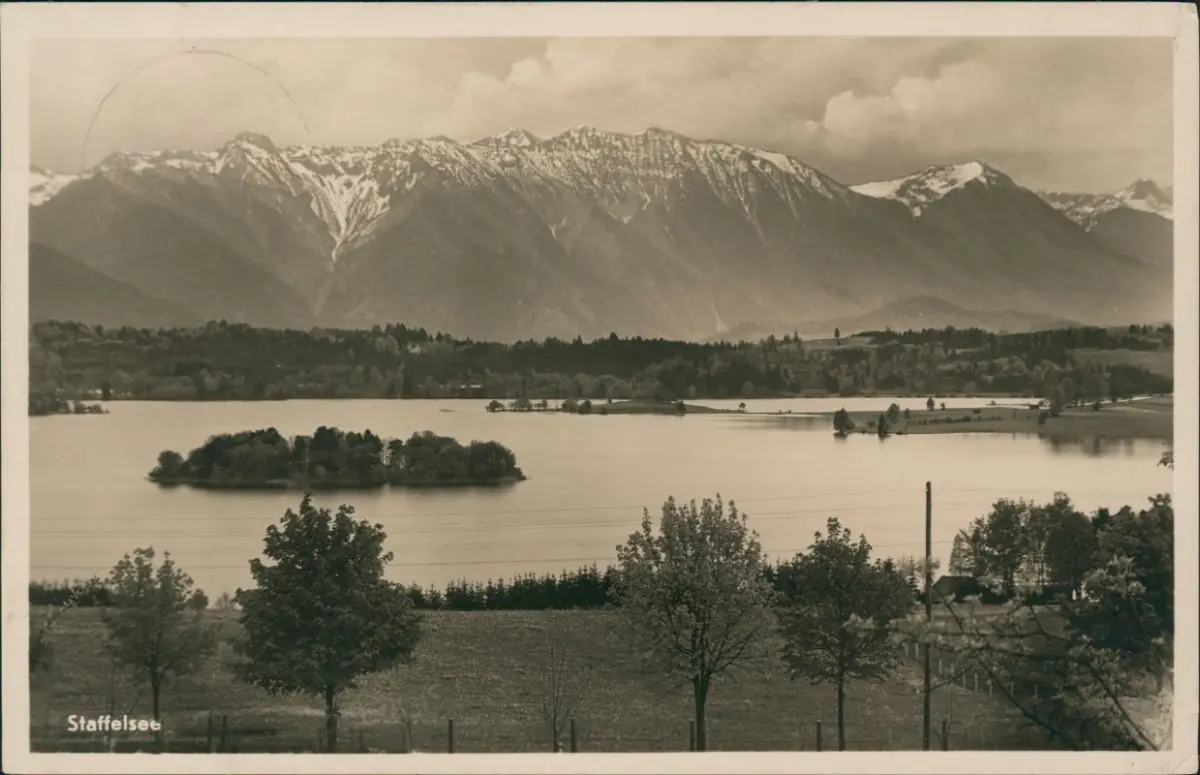 Ansichtskarte Uffing am Staffelsee Staffelsee mit Alpen Berg-Panorama 1932