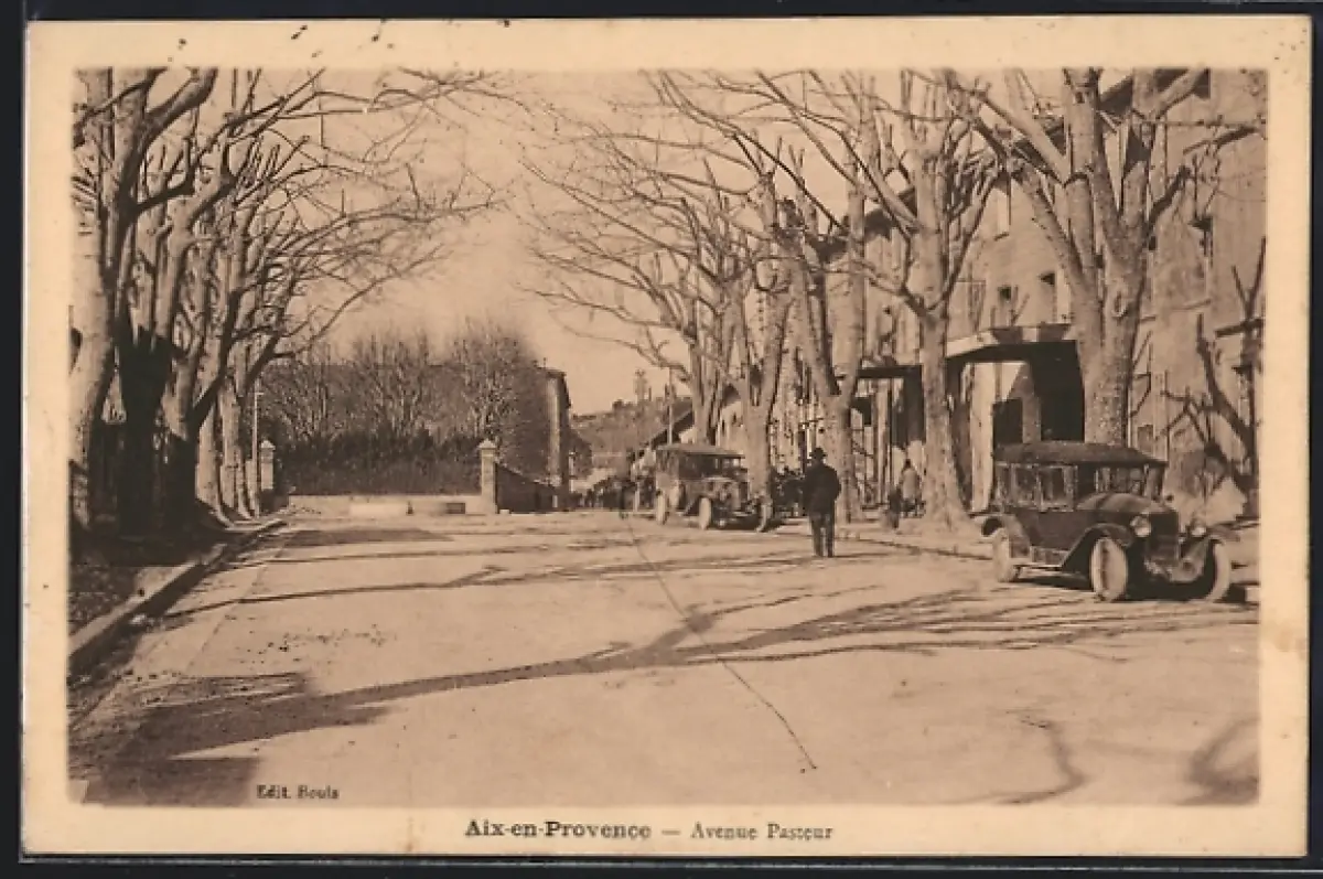 AK Aix-en-Provence, Avenue Pasteur avec voitures anciennes et arbres bordant la route