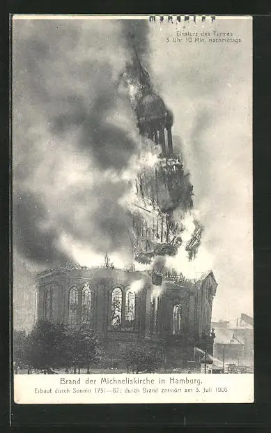 AK Hamburg-Neustadt, Brand der Michaeliskirche, Erbaut 1751-62, Durch Brand zerstört 1906, Einsturz des Turmes