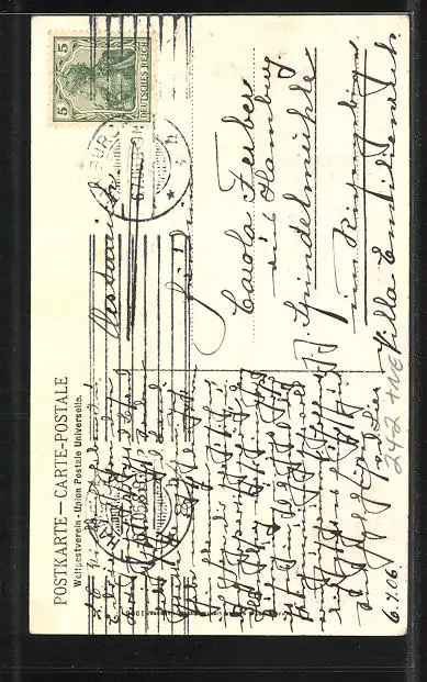 alte Ansichtskarte, gelaufen 1906, Stempelspur, minimale Einrisse re. oben, guter Zustand