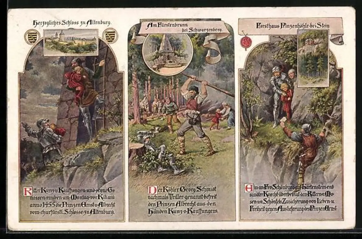 AK Prinzen-Höhle, Altenburger Prinzenraub, Prinz Albrecht wird von Köhler Georg Schmidt befreit